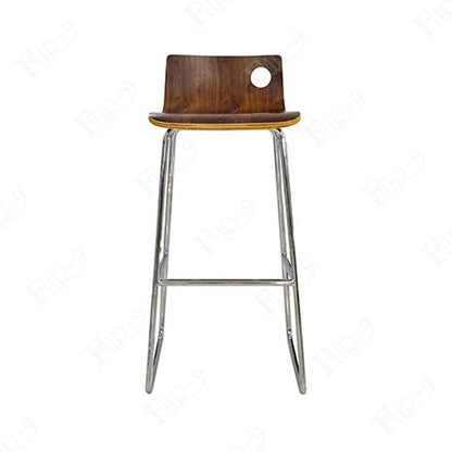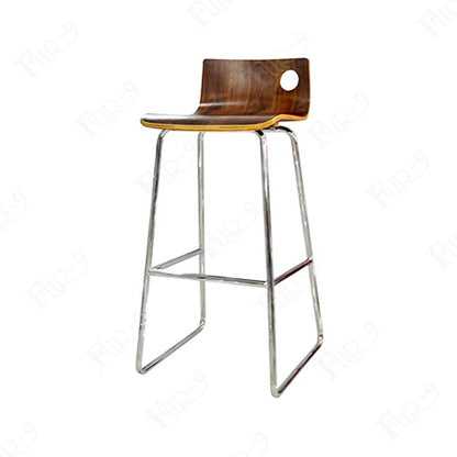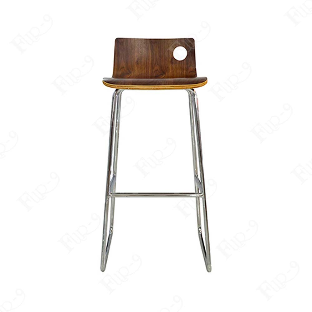 - เก้าอี้บาร์ที่นั่งไม้ดัด ขาเหล็กชุบโครเมี่ยม